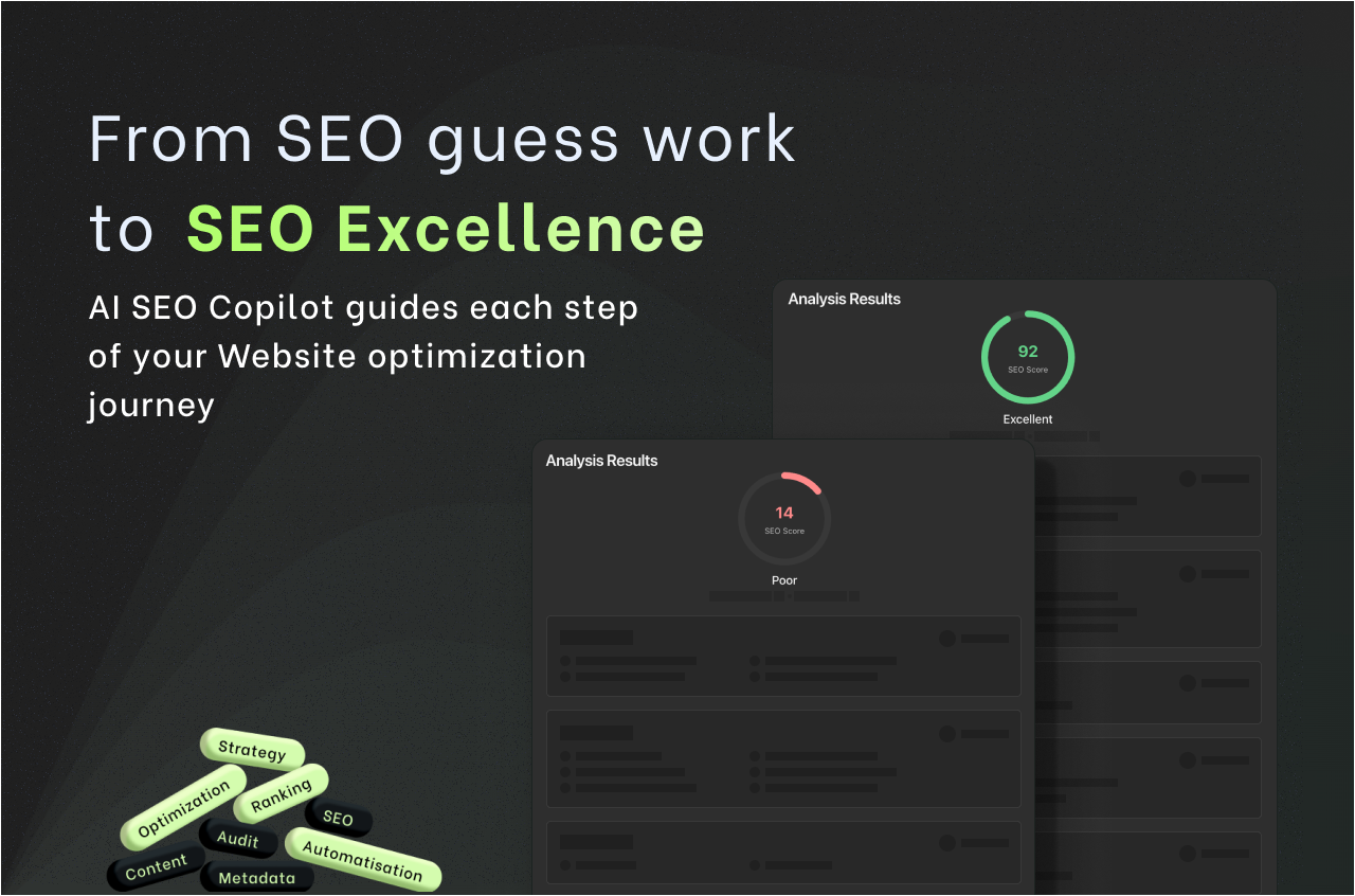 Understand your site's SEO health without hiring an agency. AI SEO Copilot makes SEO accessible to everyone, regardless of technical background.